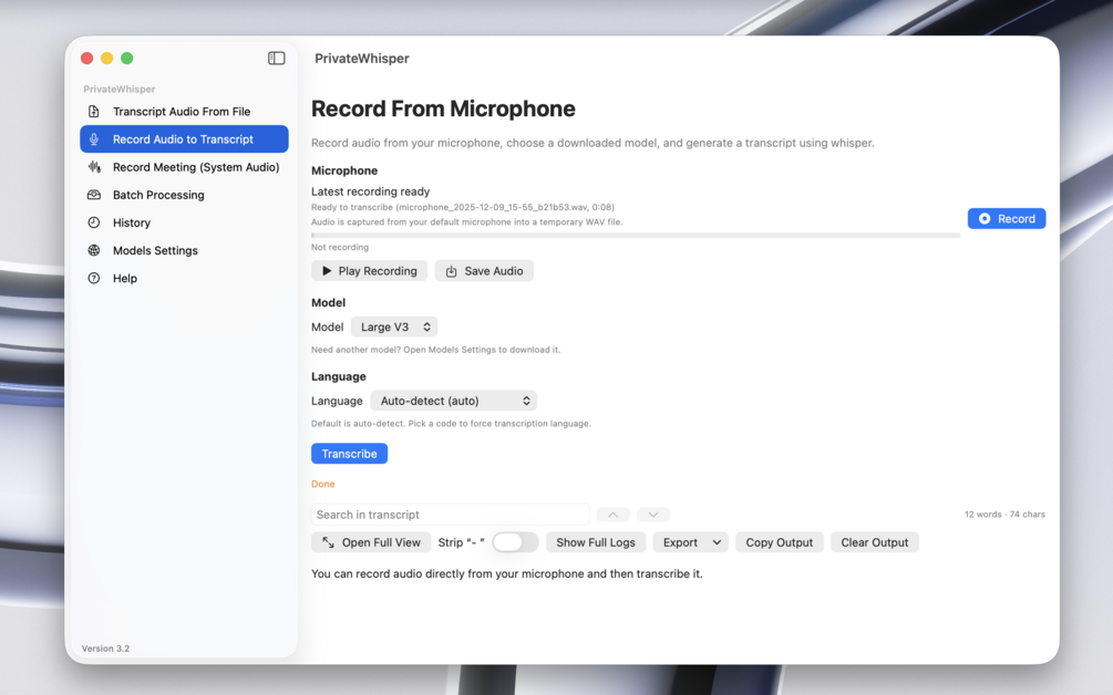 Perfect for creators, students, developers, researchers, and anyone who needs accurate speech-to-text without giving their recordings to third-party services.